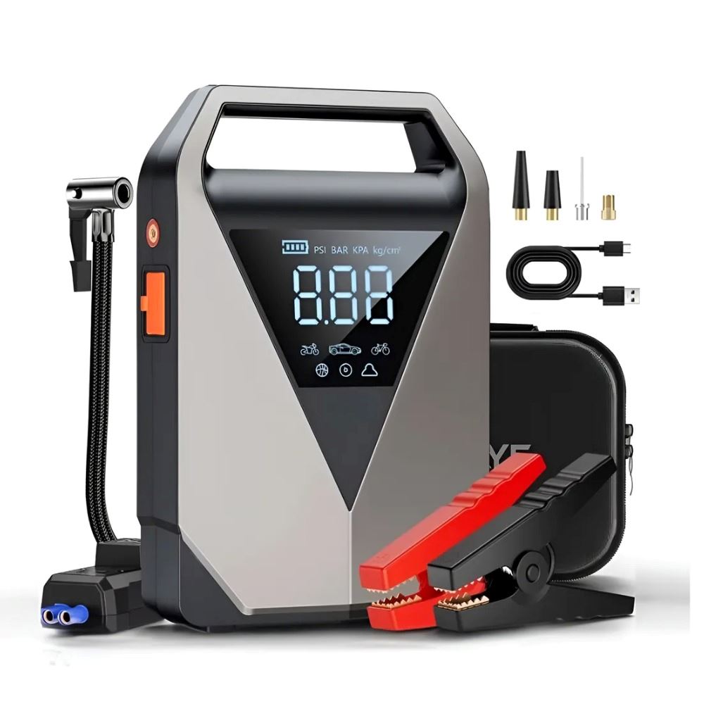 El Arrancador N1 3 en 1 es una herramienta multifuncional diseñada para ofrecer potencia, seguridad y practicidad en cualquier situación. Su diseño combina arrancador de batería, compresor de aire, linterna LED y power bank en un solo dispositivo compacto y confiable. Ideal para autos, motos, SUV y camionetas.