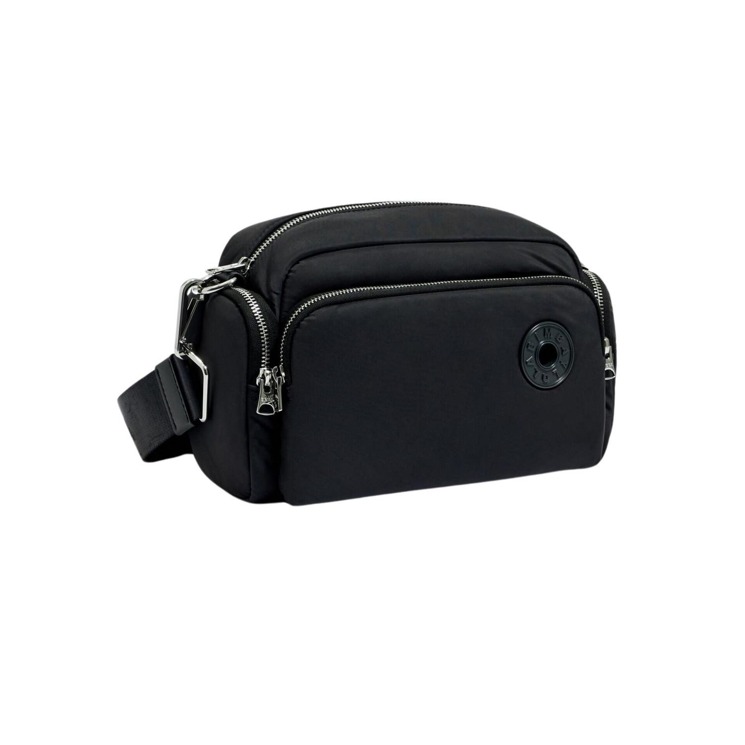 El tejido base del exterior y el asa de mano de este producto es de poliéster certificado reciclado para reducir el consumo de nuevos recursos naturales. El recubrimiento del tarjetero interior es de poliuretano water-based de producción responsable, producido de forma más sostenible, sin utilizar el disolvente químico DMFa.