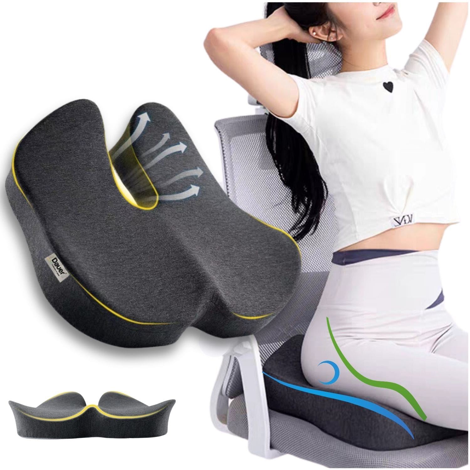 COMODIDAD: cojín lumbar ideal para personas que pasan largas horas sentadas. mejora la postura . Ofrece soporte a la zona pelvica , escapular y lumbar.