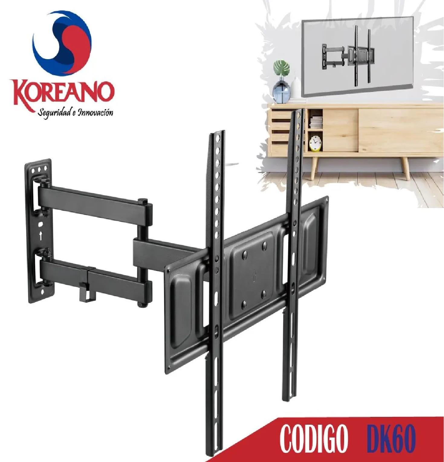 El soporte de pared de movimiento completo Koreano DK50 es la solución ideal para quienes buscan flexibilidad, resistencia y un diseño moderno. Compatible con televisores planos y curvos de 32” a 60”, soporta hasta 35 kg y permite ajustar la posición de tu pantalla para obtener el mejor ángulo de visión desde cualquier punto de la habitación.