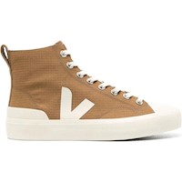 - Plantilla acolchada, talón y logotipo en contraste, el forro es una mezcla de algodón suave y botellas de agua de plástico reciclado, suela hecha de goma amazónica, residuos de arroz y goma reciclada. Cierre con cordones. Goma, textil, cuero, goma.